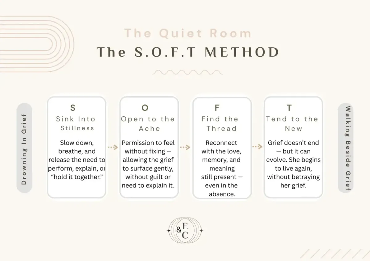 There’s no timeline here, no pressure. Just a calm, compassionate reminder that you are not broken, you are grieving, and you don’t have to do it alone.